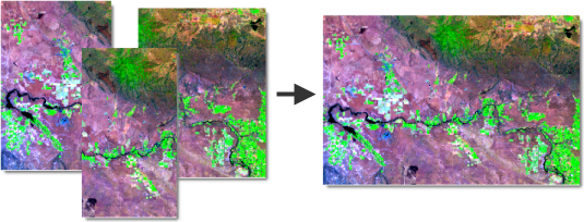 Combine images to create single raster datasets with optical mosaics