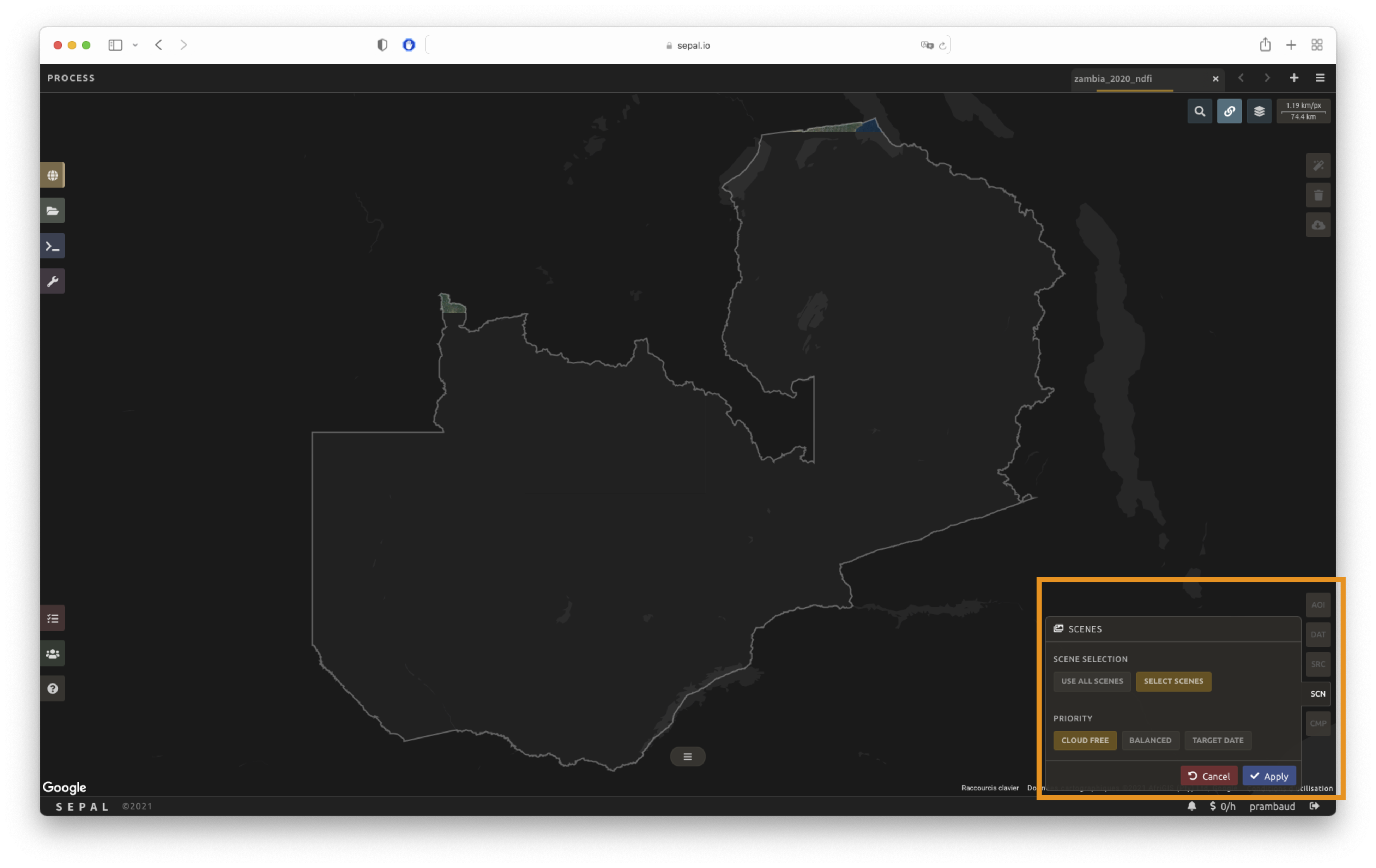Choose Select scenes and choose one of the three available Priority options, based on the needs of your analysis (SEPAL sorts the images available for each tile):