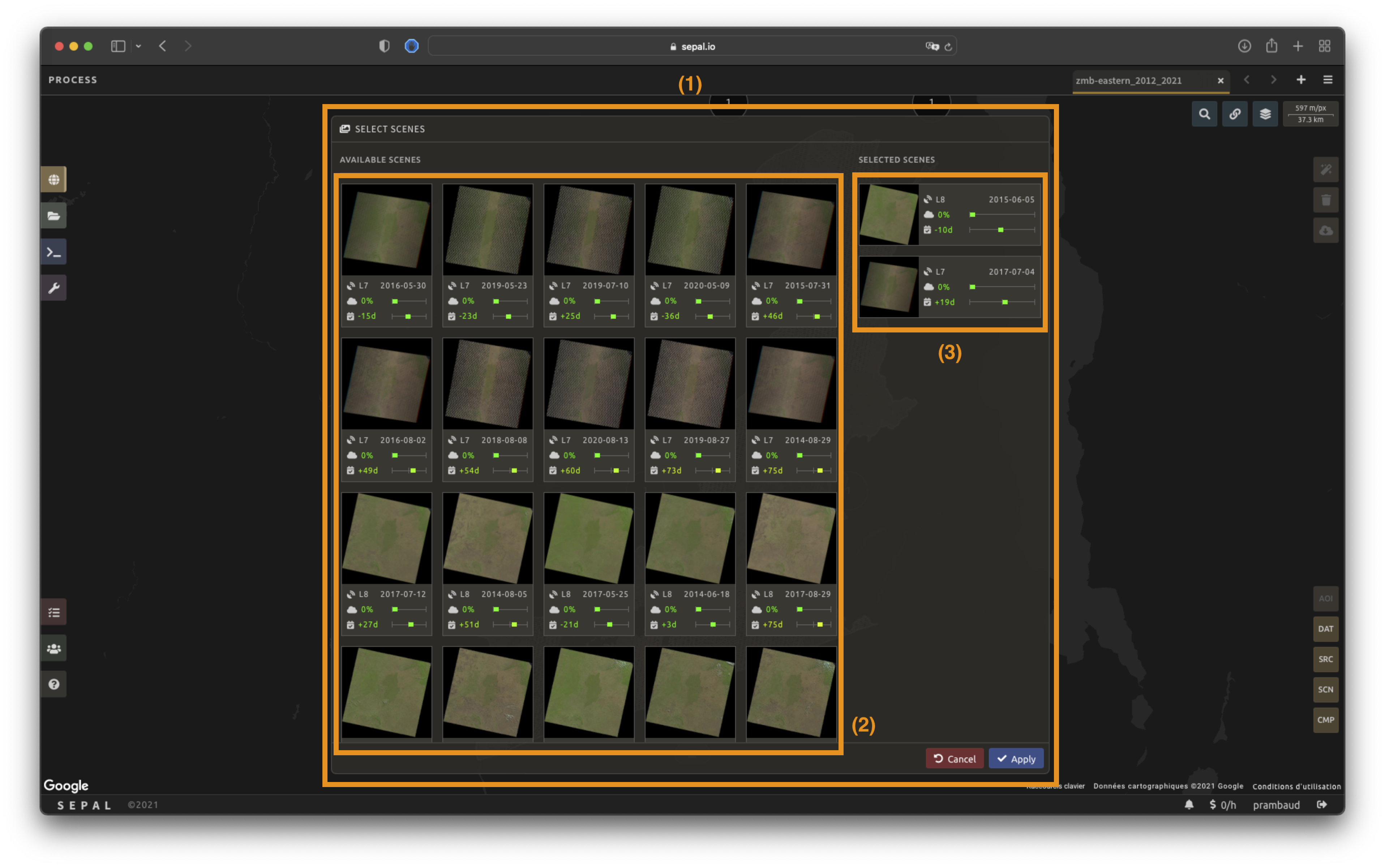 You won’t be able to retrieve the images if your SEPAL and Google Earth Engine (GEE) accounts are not connected. For more information, go to Use GEE with SEPAL.