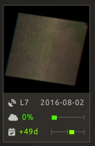 Each thumbnail represents a scene of the tile stack. You have the option to include them in the mosaic. The scenes located on the left side are the Available scenes; the Selected scenes are on the right side. In both cases, the following information can be found on the thumbnail: