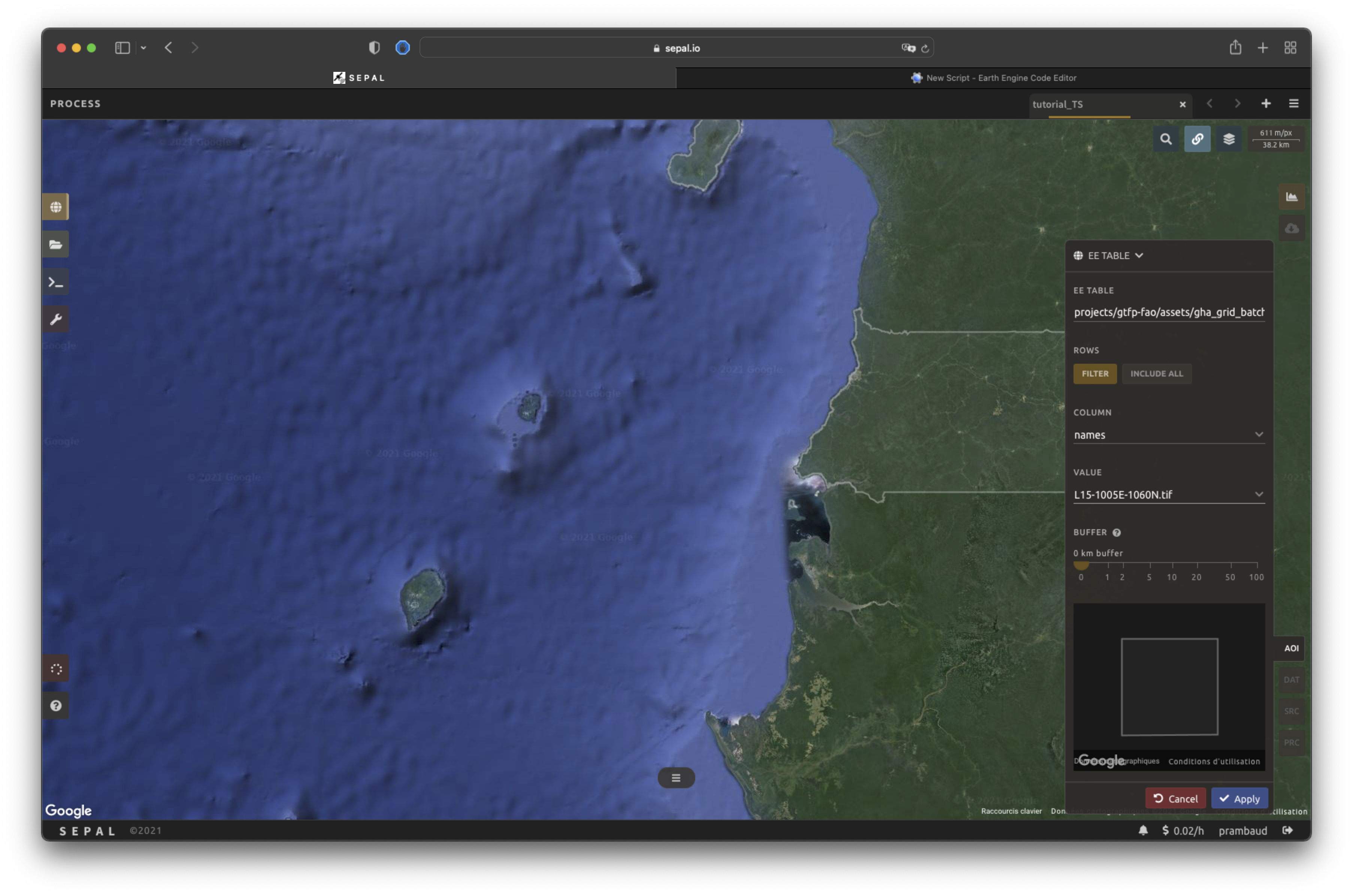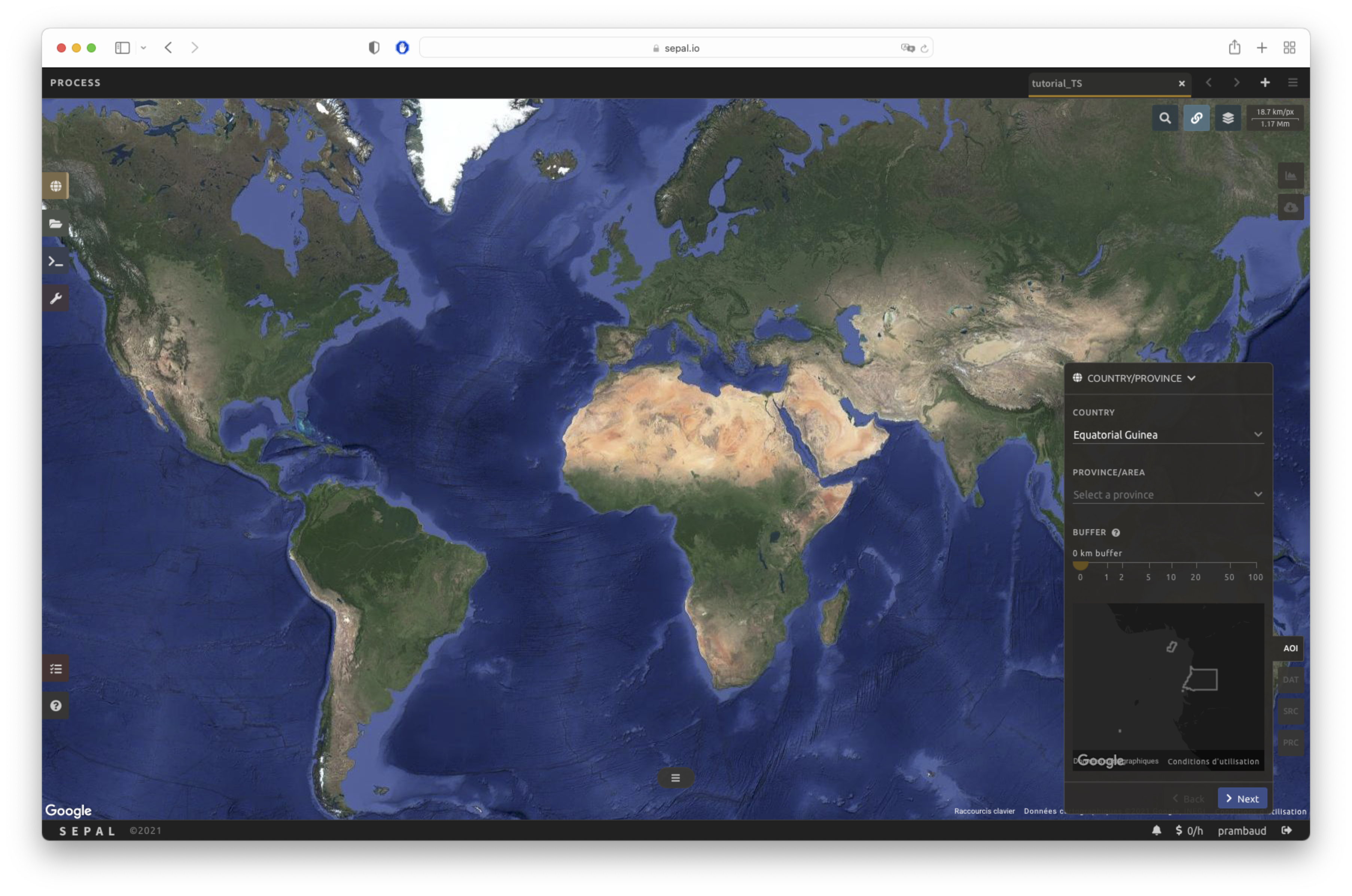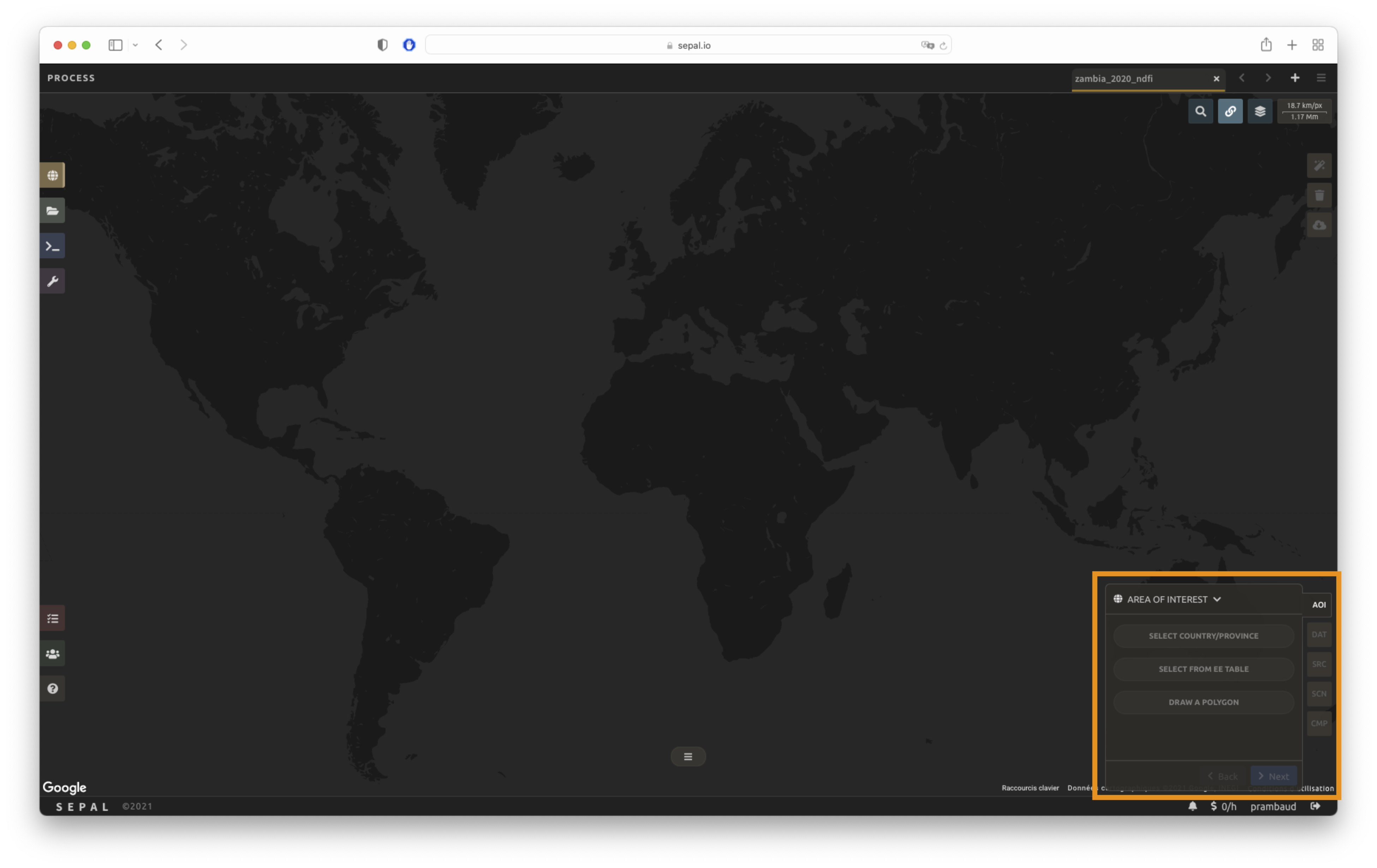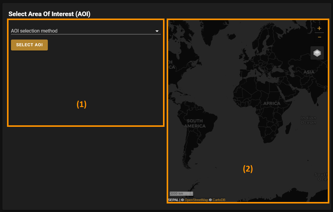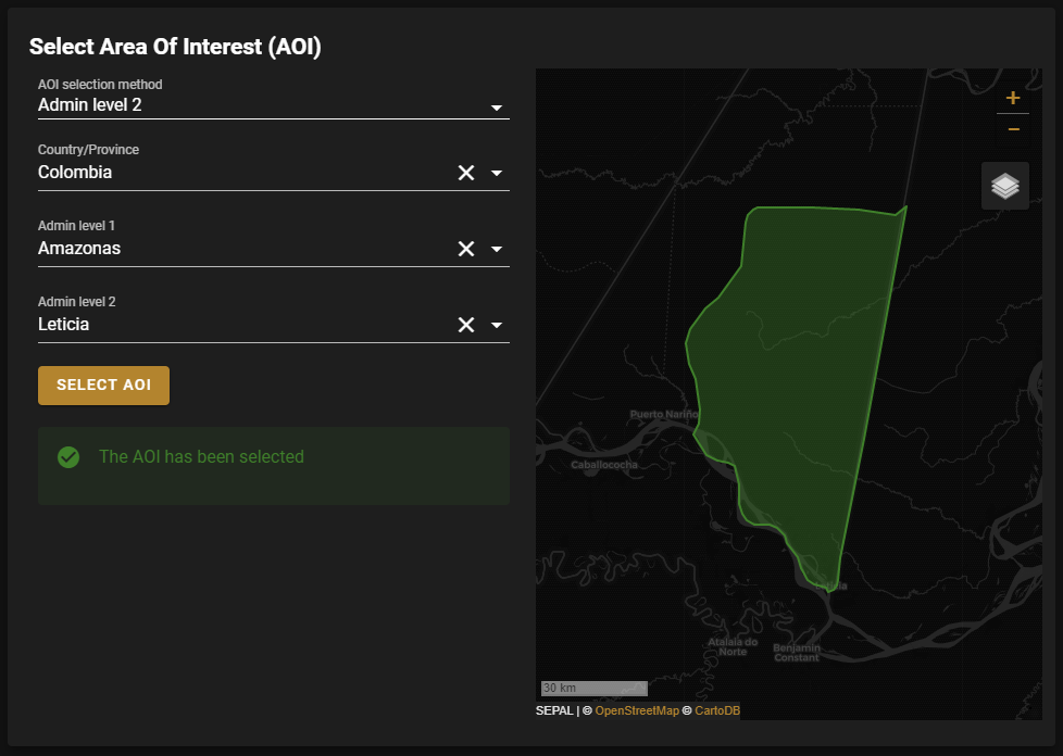 In most SEPAL modules, the first mandatory input is the area of interest (AOI), which is used as a boundary to cut the processes and its outputs.