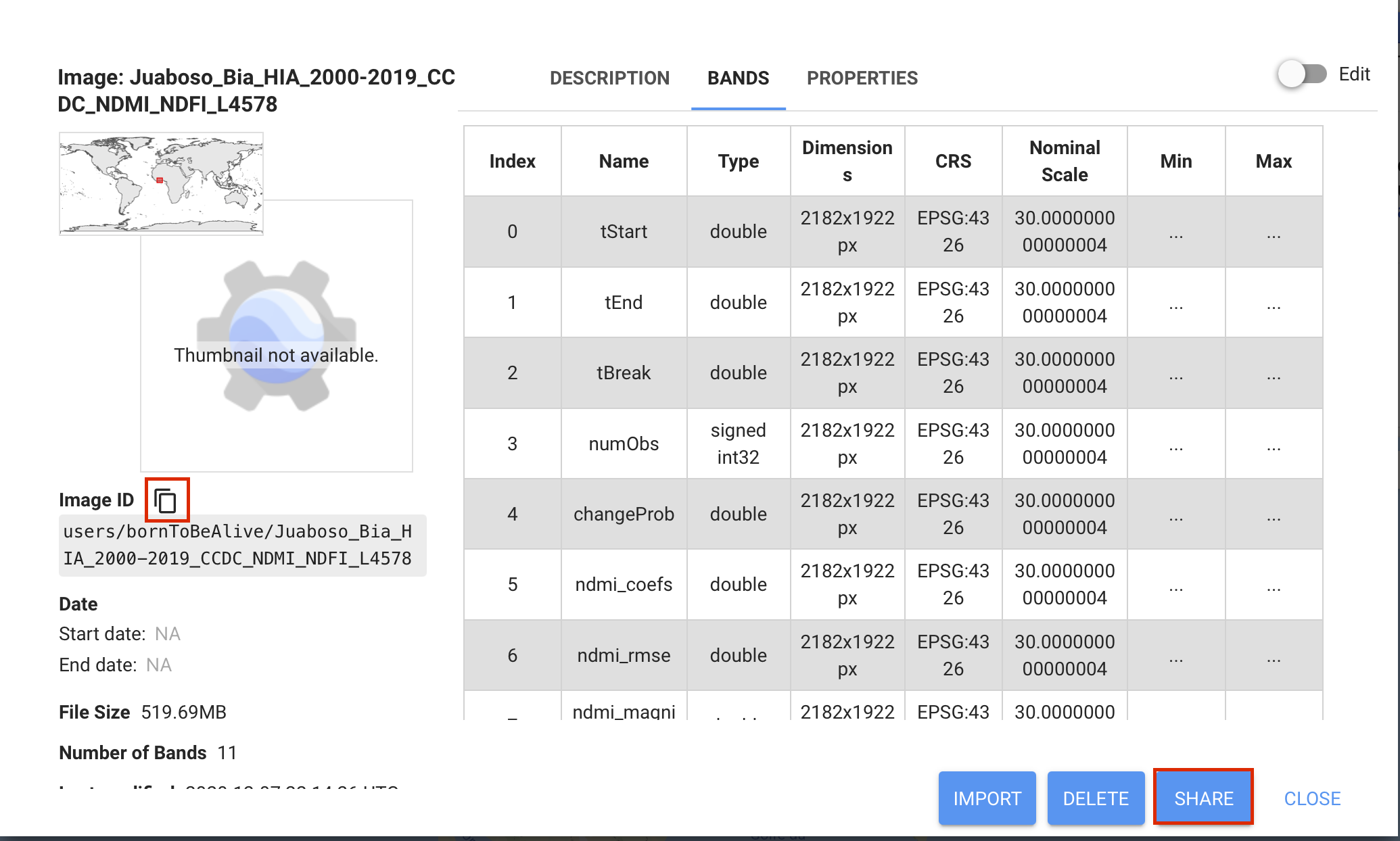 Once you’ve uploaded your assets, you can use them in SEPAL by copying and pasting the name of each whenever an asset name is requested from the interface.