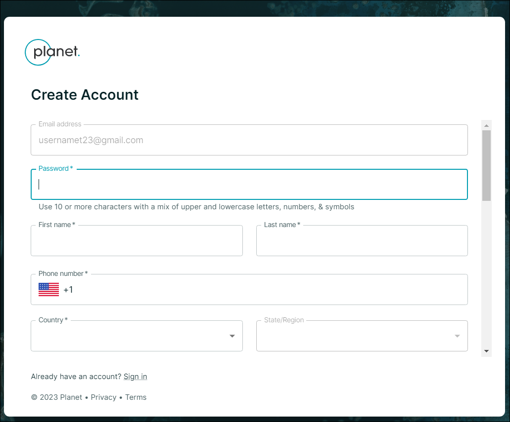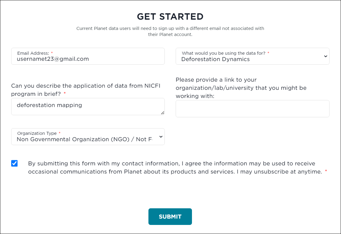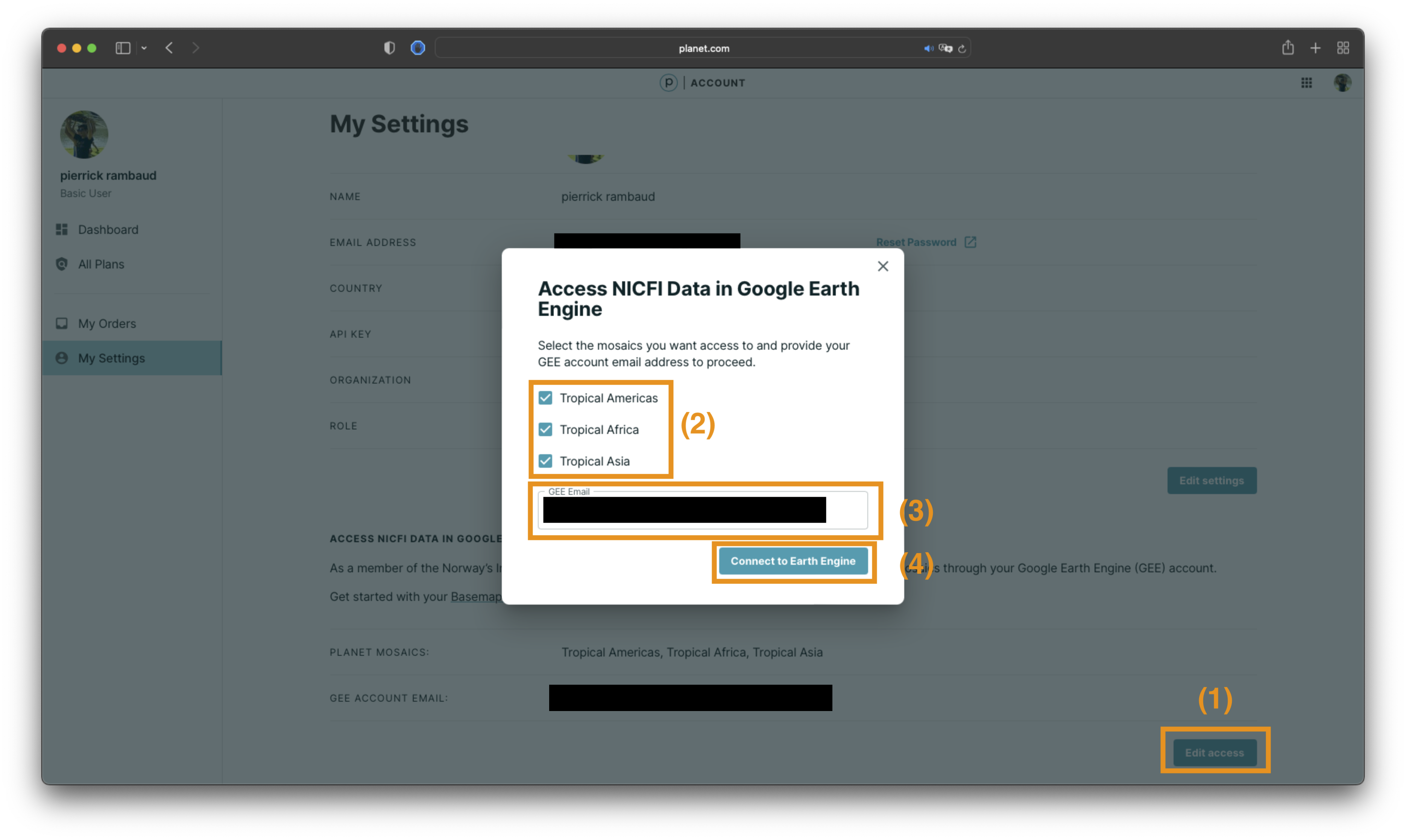 Sign up for NICFI–PlanetLab data access using the same email address associated with your GEE account.