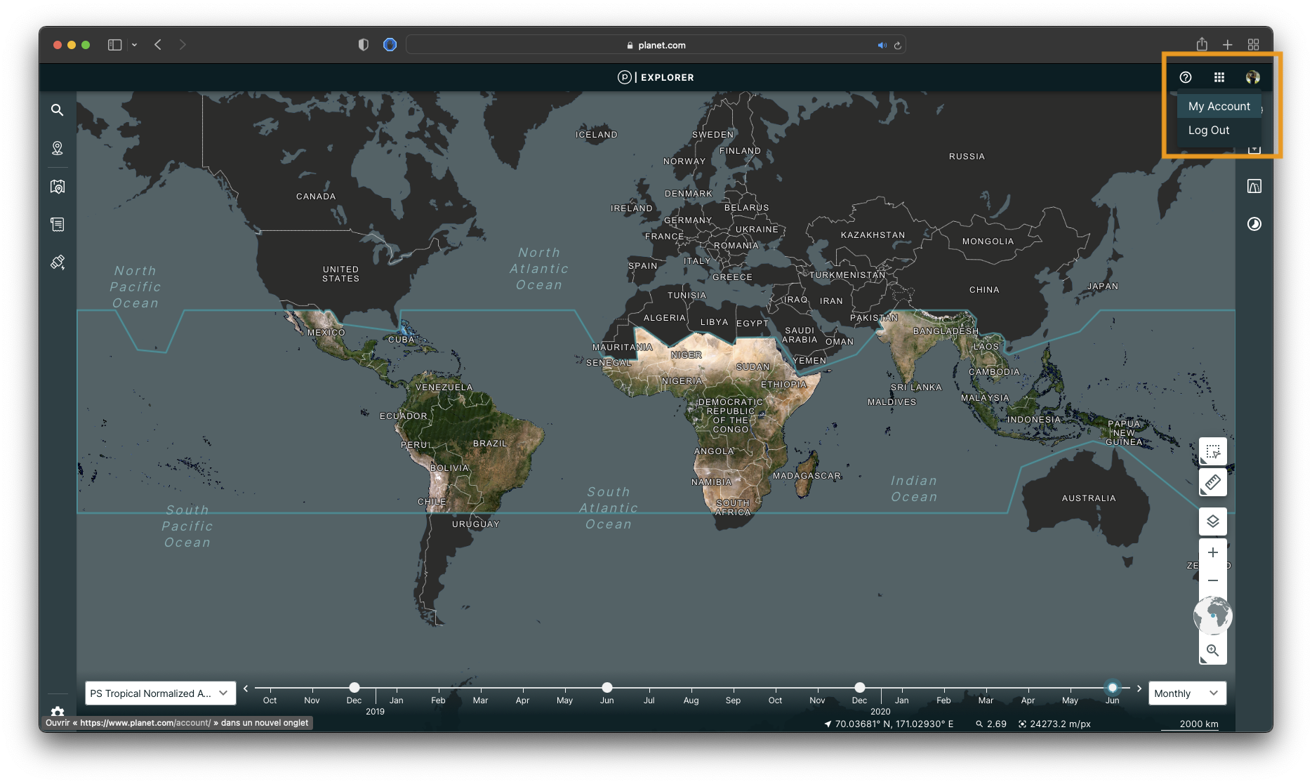 Go to the Planet Platform Explorer. In the upper-right corner, select My Account.