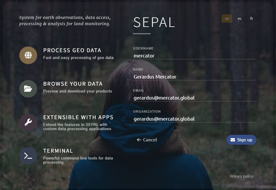 Applications are evaluated by the SEPAL team to prevent bots and malicious users from accessing the platform.