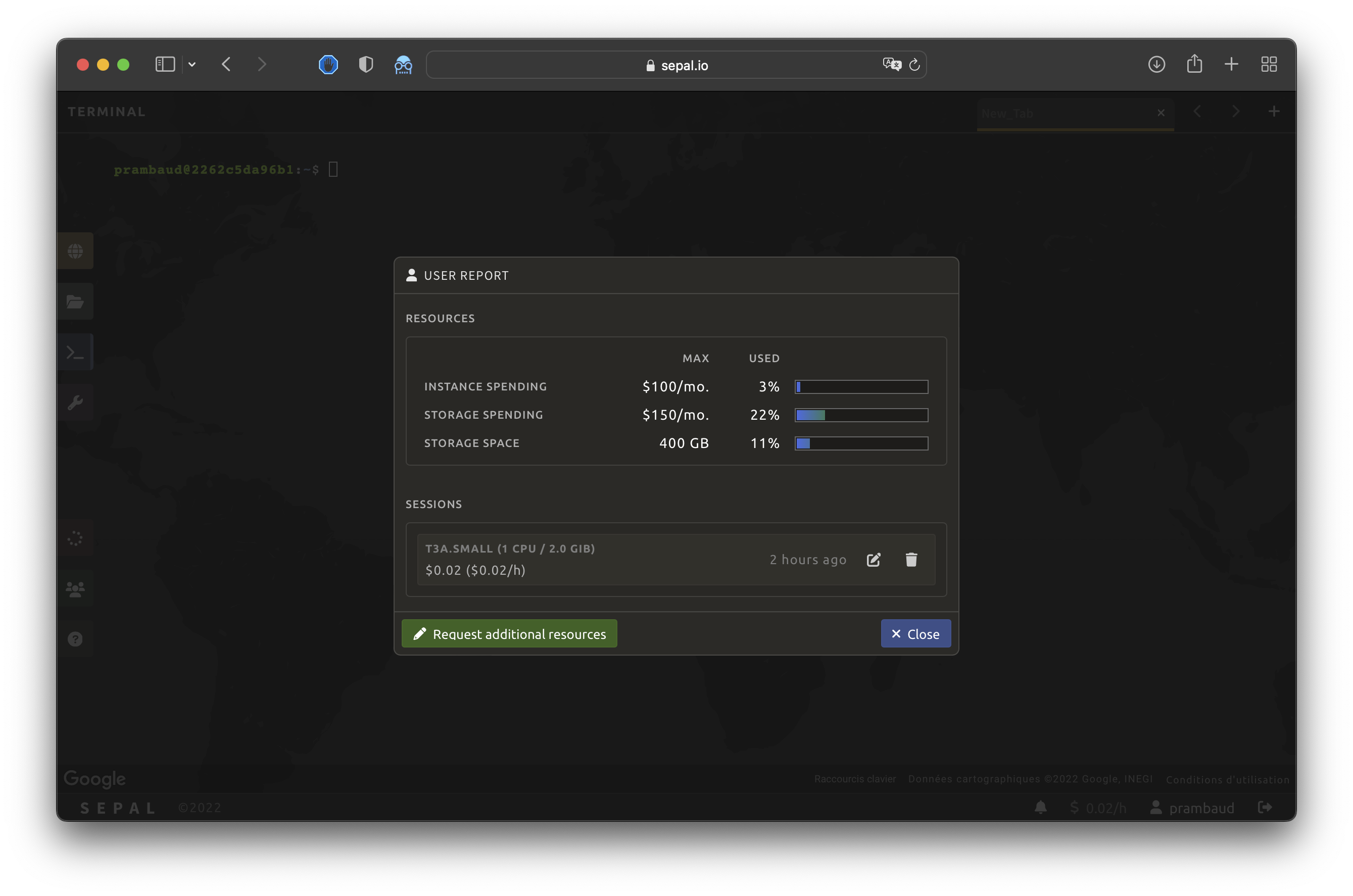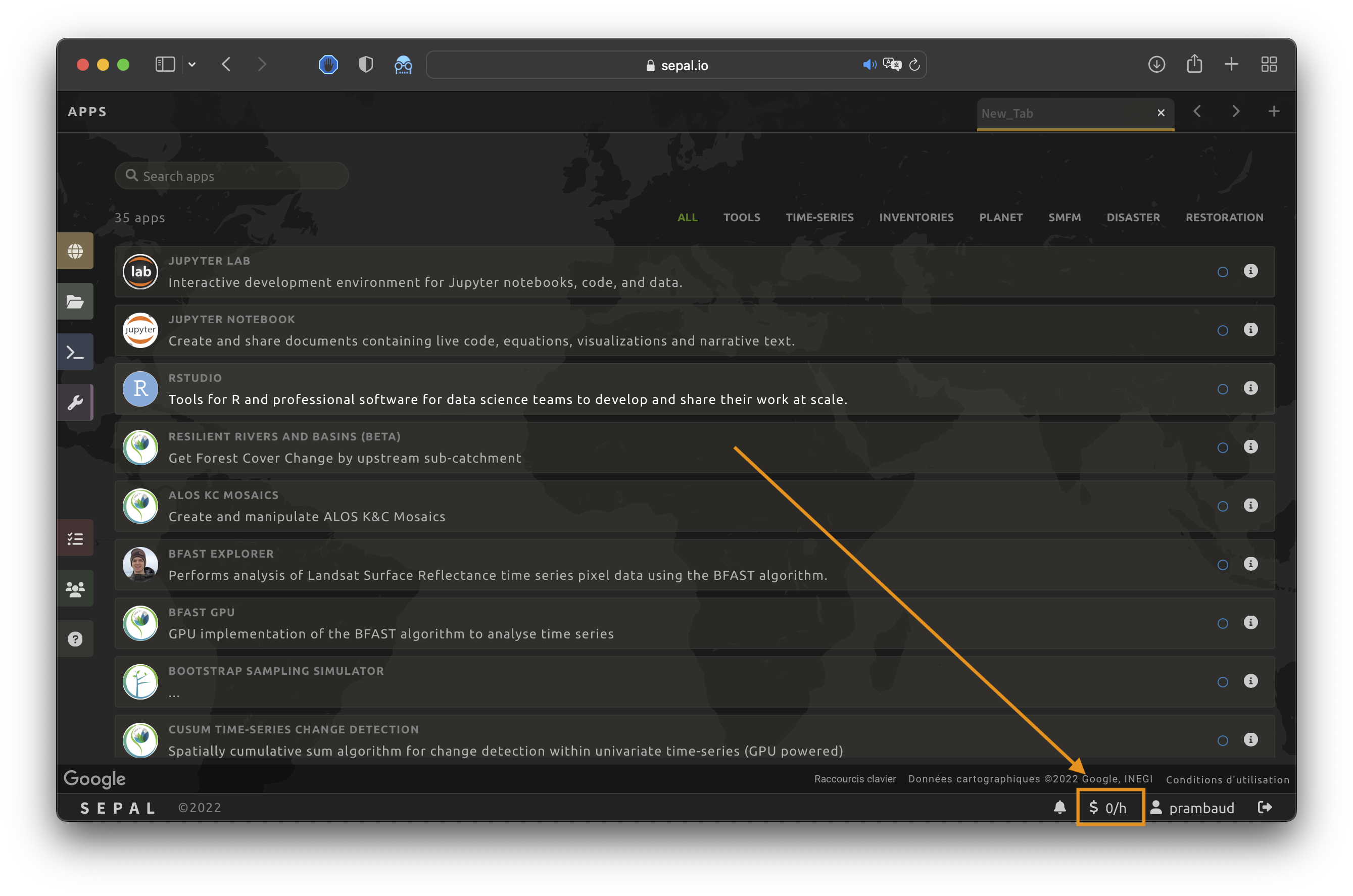 SEPAL provides free access to computation resources that are shared among registered users. To prevent exportation mistakes, new users are granted few resources that are sufficient for discovering the functionalities and running subregional analyses. By default, instances are closed automatically when they are not being used.