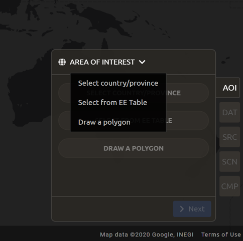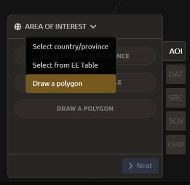 There are three ways to choose your AOI. Open the menu by selecting the carrot on the right side of the window label.