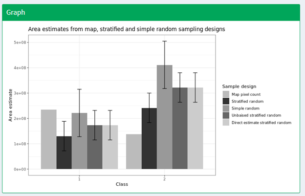 In this article, you will learn how to perform area estimation for land use/land cover and two-date change detection classifications. We will use sample-based approaches to area estimation. This approach is preferred over pixel-counting methods because all maps have errors (e.g. maps derived from land cover/land use classifications may have errors due to pixel mixing or noise in the input data). Using pixel-counting methods will produce biased estimates of area; you cannot tell whether these are overestimates or underestimates. Sample-based approaches create unbiased estimates of area and the error associated with your map.
