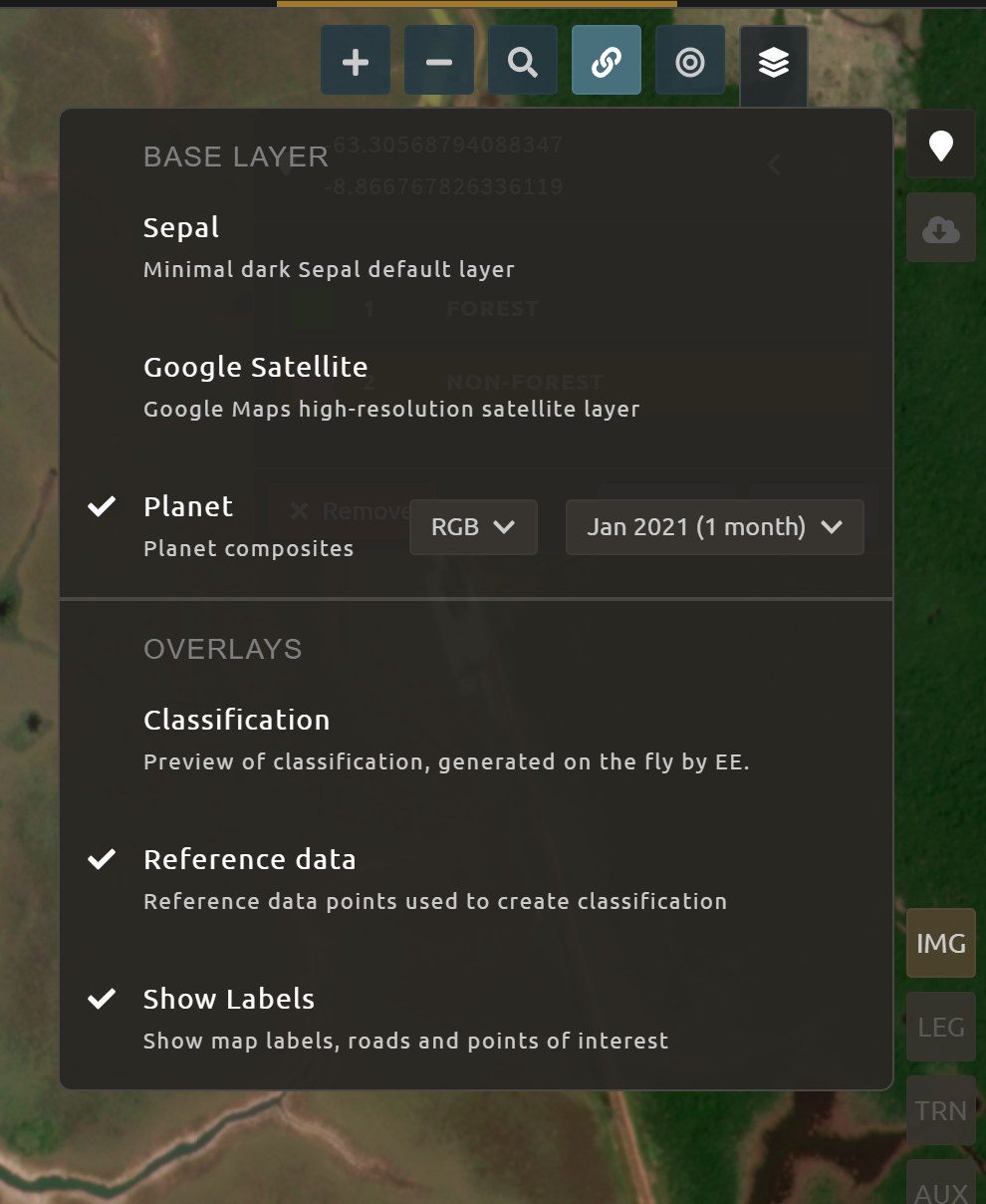 how to collect training data in SEPAL’s classification interface;