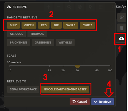 SEPAL provides a robust interface for generating Landsat and Sentinel 2 mosaics. Mosaic creation is the first step for the image classification and two-date change detection processes covered in Module 2 and Module 3, respectively. These mosaics can be downloaded locally or to your Google Drive account.