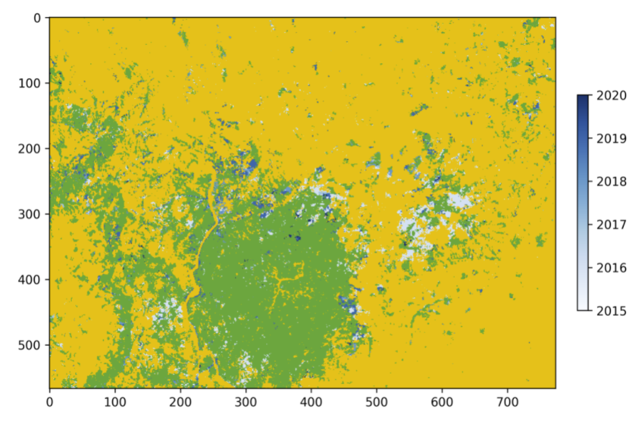 In Module 3, you will learn how to perform image change detection. Building on skills from Module 1 and Module 2, you will define what change looks like, collect training data, and run your model. You will also learn about different tools used to perform time-series analysis.