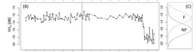 To detect forest cover loss in NRT in dense Sentinel-1 time series, a pixel-based approach is applied.