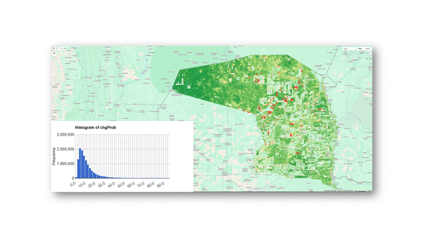 Remap Values: With the Remapping tool, classify areas as ‘forest’ where the maximum forest probability exceeds a specified threshold, and mask out areas that fall below this threshold.