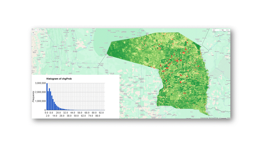 Apply Mask: Use the Masking tool to apply the ‘forest mask’ to the forest change probability layer.